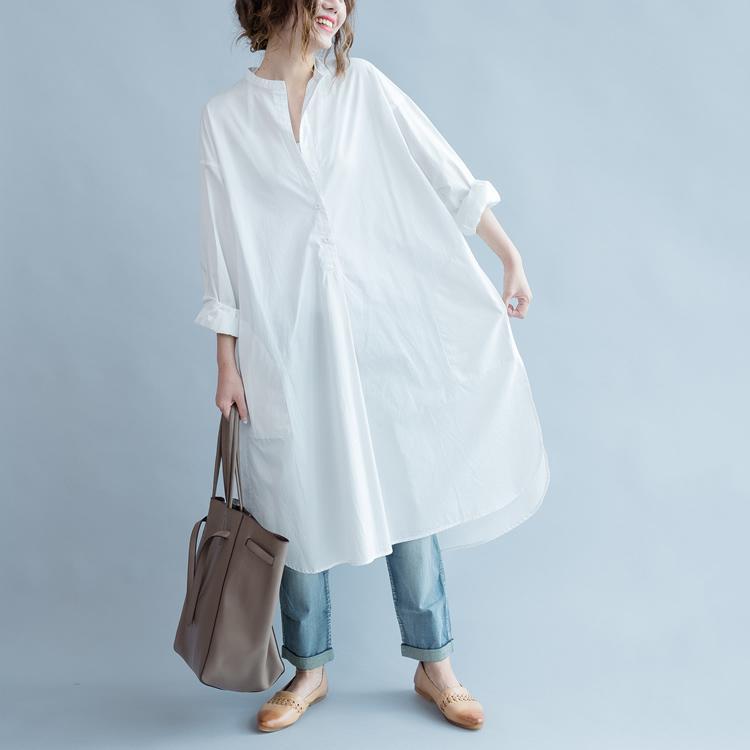 レディース シャツワンピース ロングシャツ 春 秋 シンプル サイドスリット ラウンドネック カジュアルワンピース ワンピース おしゃれ ホワイト