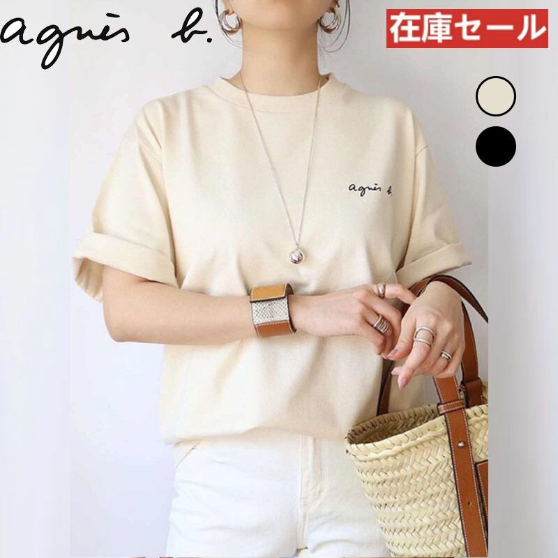 【在庫セール】agnes b. アニエスベー ロゴ 半袖 Tシャツ シンプル無地 カジュアル レディース クルーネック 綿 半袖 Tシャツ ベージュ