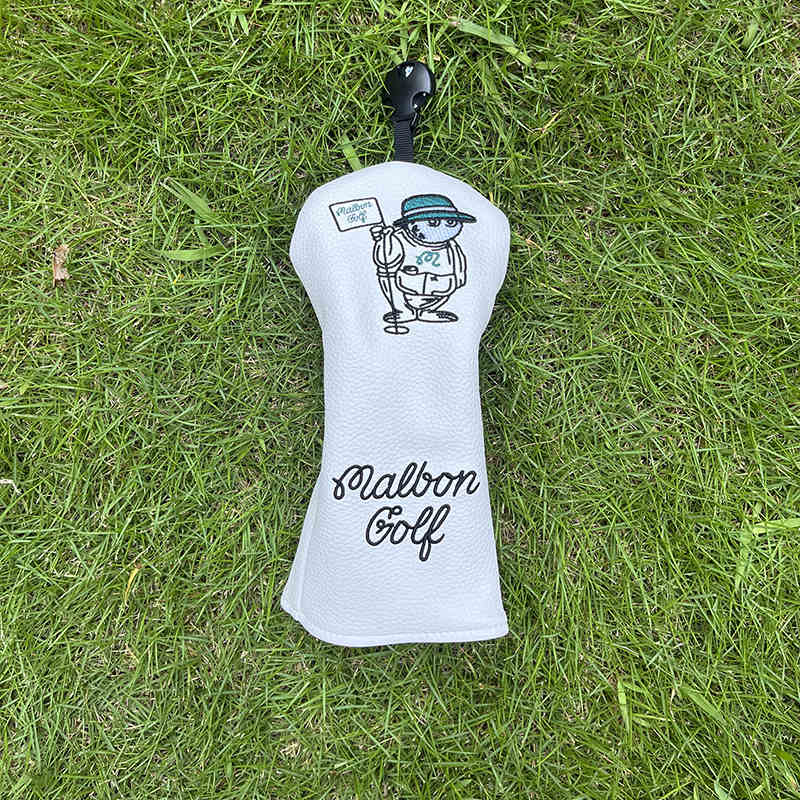 人気商品 malbon golf マルボンゴルフ クラブ ヘッドカバー 1+3+5+UT 4点セット アイアン用 ドライバー用 ゴルフヘッドカバー ホワイト