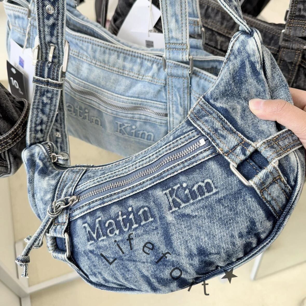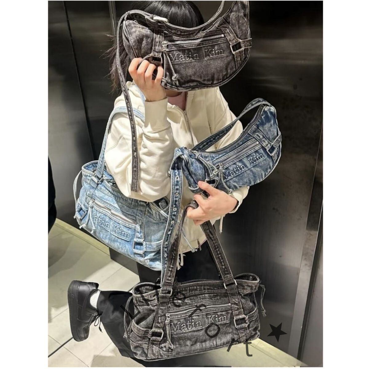 韓国 Matin Kim マーティンキム LOGO WASHED DENIM DUFFEL BAG デニム バッグ ハンドバッグ ショルダーバッグ レディース【4カラー選択可能】