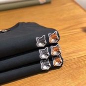 新品 MAISON KITSUNE クルーネックTシャツ 半袖 メゾンキツネ刺繍 ユニセックスTシャツ ブラック ホワイト 男女兼用