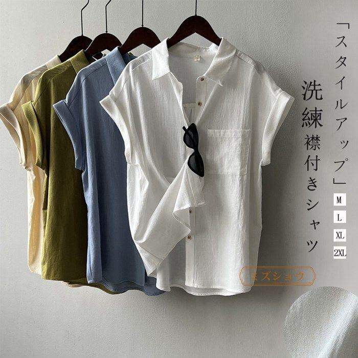 即購入OK シャツ 襟付き ブラウス レディース フレンチスリーブ ロールアップ仕様 ワイシャツ 半袖 フォーマル 通勤 オフィス シャツ 衿付き カジュアル ロールアップスリーブ スタイルアップ 薄手 羽織り 夏 大人 OL xkxiaoz14