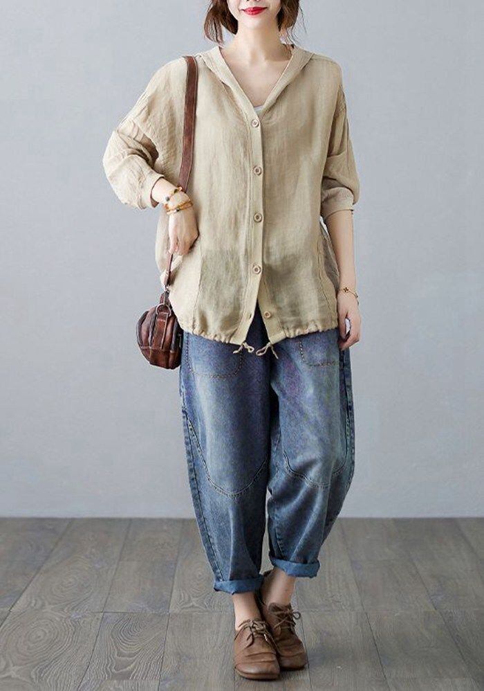 チュニック 七分袖 カーディガン フード付き ブラウン シャツ レディース 綿麻 カーデ トップス カジュアル UVカットchaoliu45