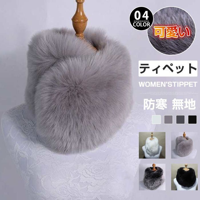 ティペット マフラー レディース ファー フェイクファー ネックウォーマー ふわふわ モコモコ スヌード 可愛い オシャレ 無地 付け襟 パーティ シンプル 秋冬 防寒 暖かい ファッション プレゼント ギフトbolizi01