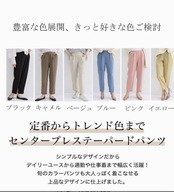 【大人の女性にふさわしいデザイン】大人の女性にふさわしい、上品で落ち着いた雰囲気を持つストレートパンツ、テーパードパンツ、スラックスです。高腰設計により、脚のラインを美しく見せながら、ウエスト部分もしっかりサポートしてくれます。