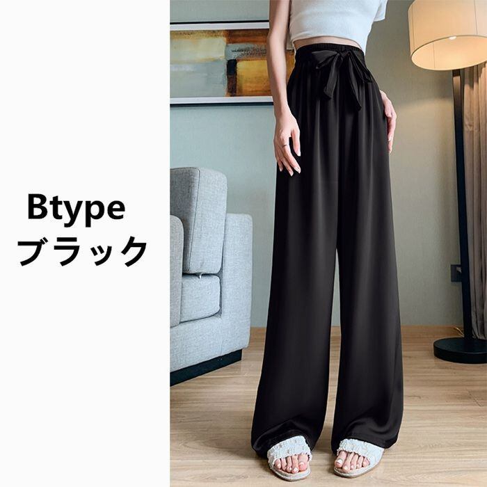 レディース ワイドパンツ ガウチョパンツ ガウチョ パンツ ひんやり 無地 ウェストリボン イージーパンツ ボトムス 低身長 高身長skwjjj15