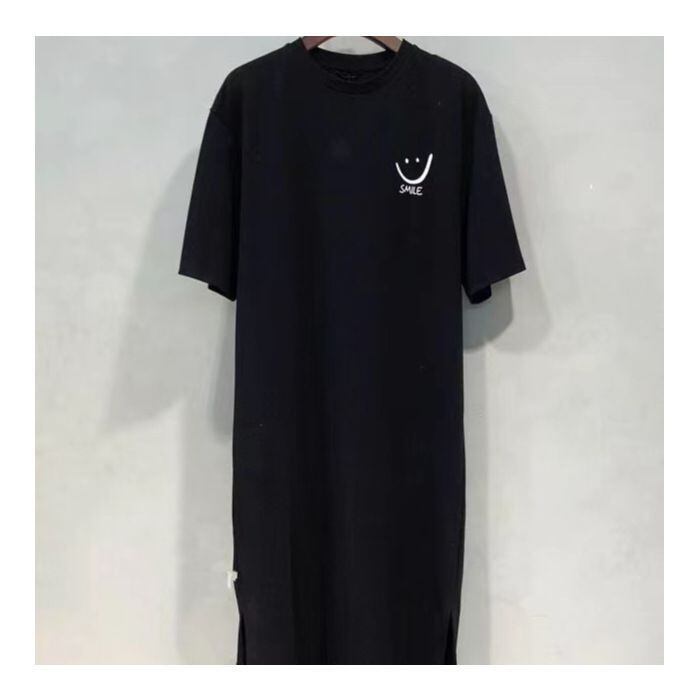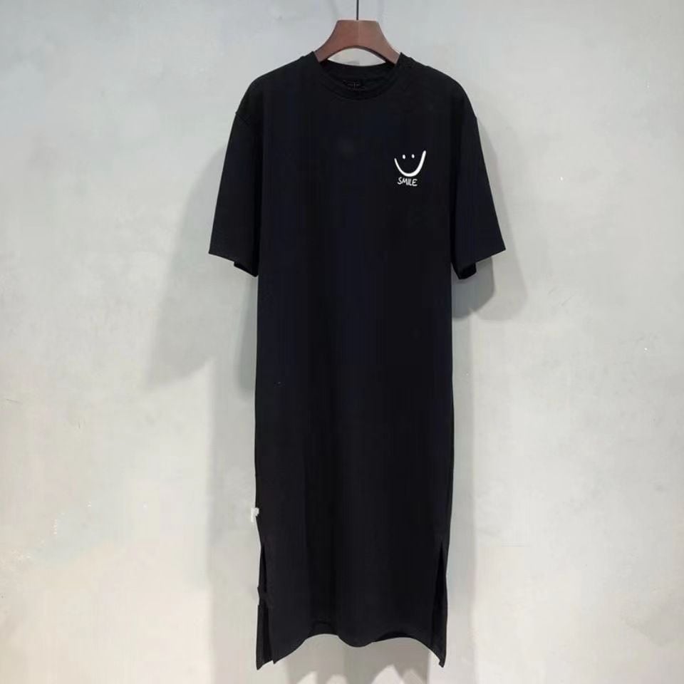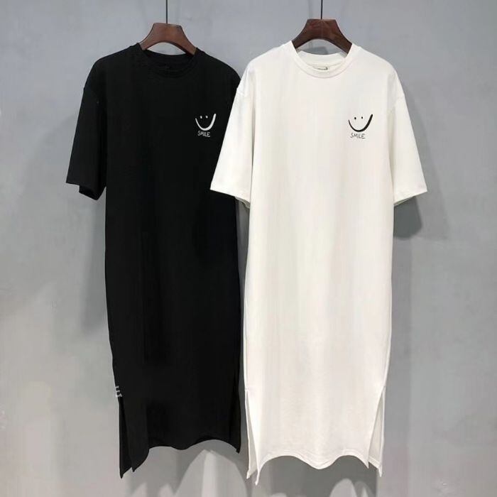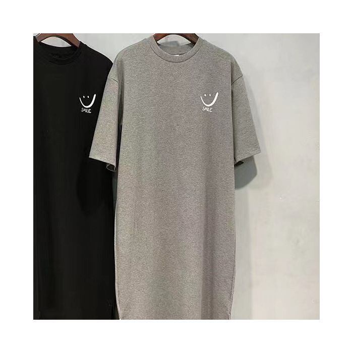 ロングワンピース 半袖 スマイル 笑い顔 レディース Tシャツワンピ クルーネック ワンピース 夏 ロング丈 マキシワンピース スリット入り カジュアル 体型カバー 着痩せ マタニティ ゆったり 肌触り 柔らかい 楽ちんjixi10