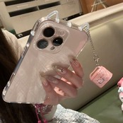 iPhone16 ケース 未使用 iPhoneケース 猫 猫耳 透明 ネコミミ スタンド iPhone15 クリア iPhone16pro ケース 韓国 かわいい クリアケース xzzhang460