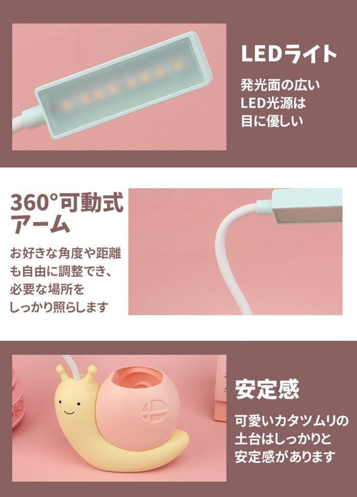 LEDデスクランプ ナイトライト デスクライト カタツムリ かわいい ミニライト LED 電気スタンド USB充電式 フレキシブルアーム 目に優しい 子供の目の保護 USB電源 ペンスタンド付き 小物収納 ペン立て 学習机 卓上ライトhydz03