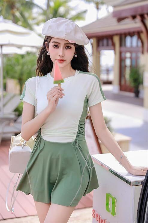 フレアワンピース水着は、女の子らしいデザインが際立っています。揺れるフレアがかわいさを一層引き立て、ウエスト部分のハイウエスト仕様はくびれと脚長効果を演出します。どんなお出かけ先でも自由に動き回りながら、フェミニンな可愛らしさを失わないでしょう。