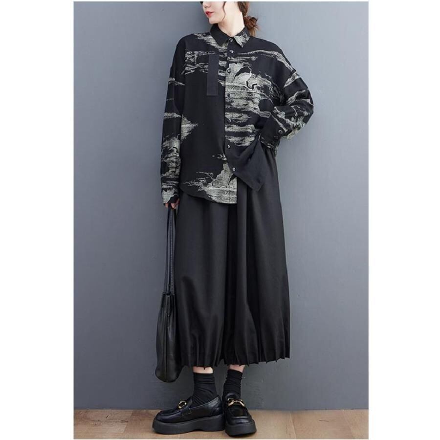 春秋シャツ ブラウス 長袖 インク トップス 前開き 着こなしの幅がグンと広がる レディース レトロ カジュアル 大きいサイズ 着痩せ シンプル