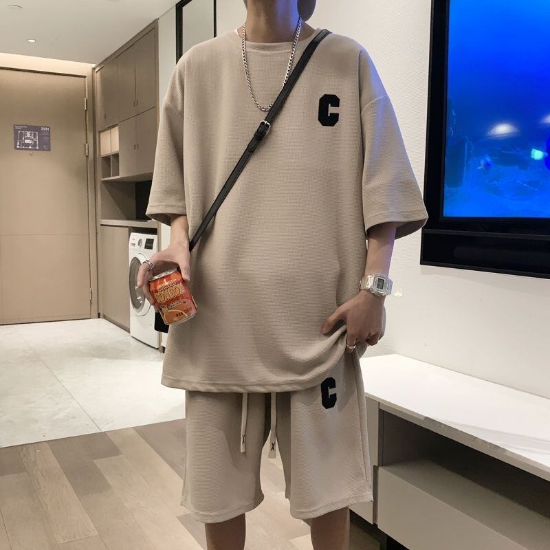 セットアップ メンズ 半袖 ワッフル 夏 上下セット Tシャツ ハーフパンツ ゆったり 韓国 ファッション ビッグTシャツ 上下 ショートパンツ ルームウェア 部屋着 運動着 ストリート ダンス qcwds05