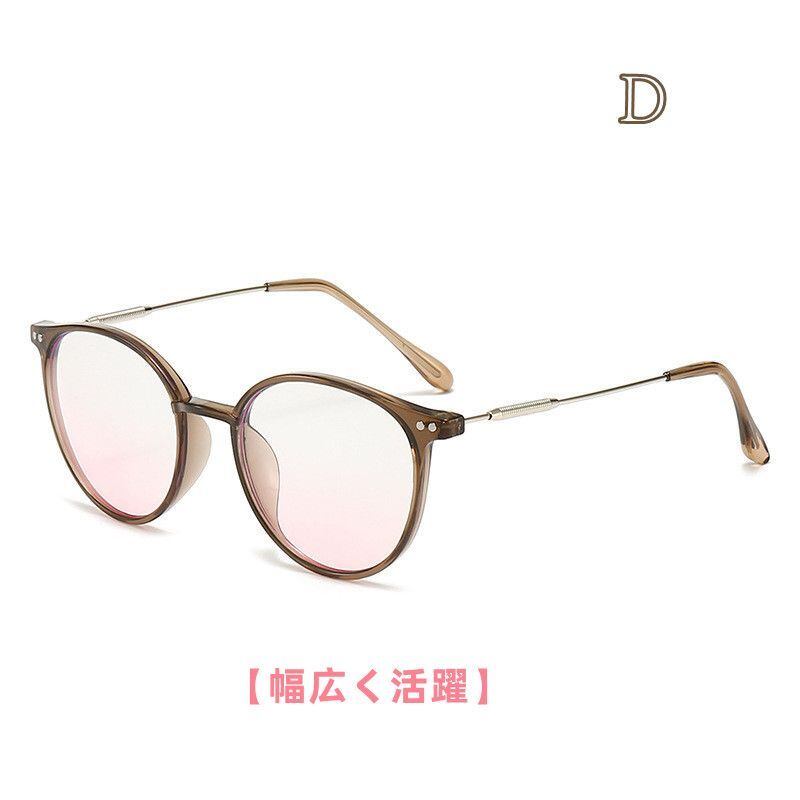 【品 番】jkyj01 【カラー】A、B、C、D 【サイズ】 下記数値を参考にしてください。 テンプル 約136mm レンズ幅 約44mm ブリッジ 約15mm ※若干の誤差がある場合がございま! 【素 材】PC 【POINT】 *---メガネをかけるだけで、自然な色感をアップさせお肌をより明るくみせます。また、ちょうどいい位置にチークを入れたように見える独特なデザインにより、肌のくすみをとばし、肌をきれいに見せる効果もあります。 *---レンズの下半分に、下に向かって濃くなるグラデーションで色が入り、メガネをかけるとちょうどいい位置にチークを入れたように見えます。 *---【軽量フィット設計】ふんわりなめらかなフィット感で、普段メガネ使用しない方でも違和感なくかけられます。(日曜日・祝日は発送対応しておりません。)