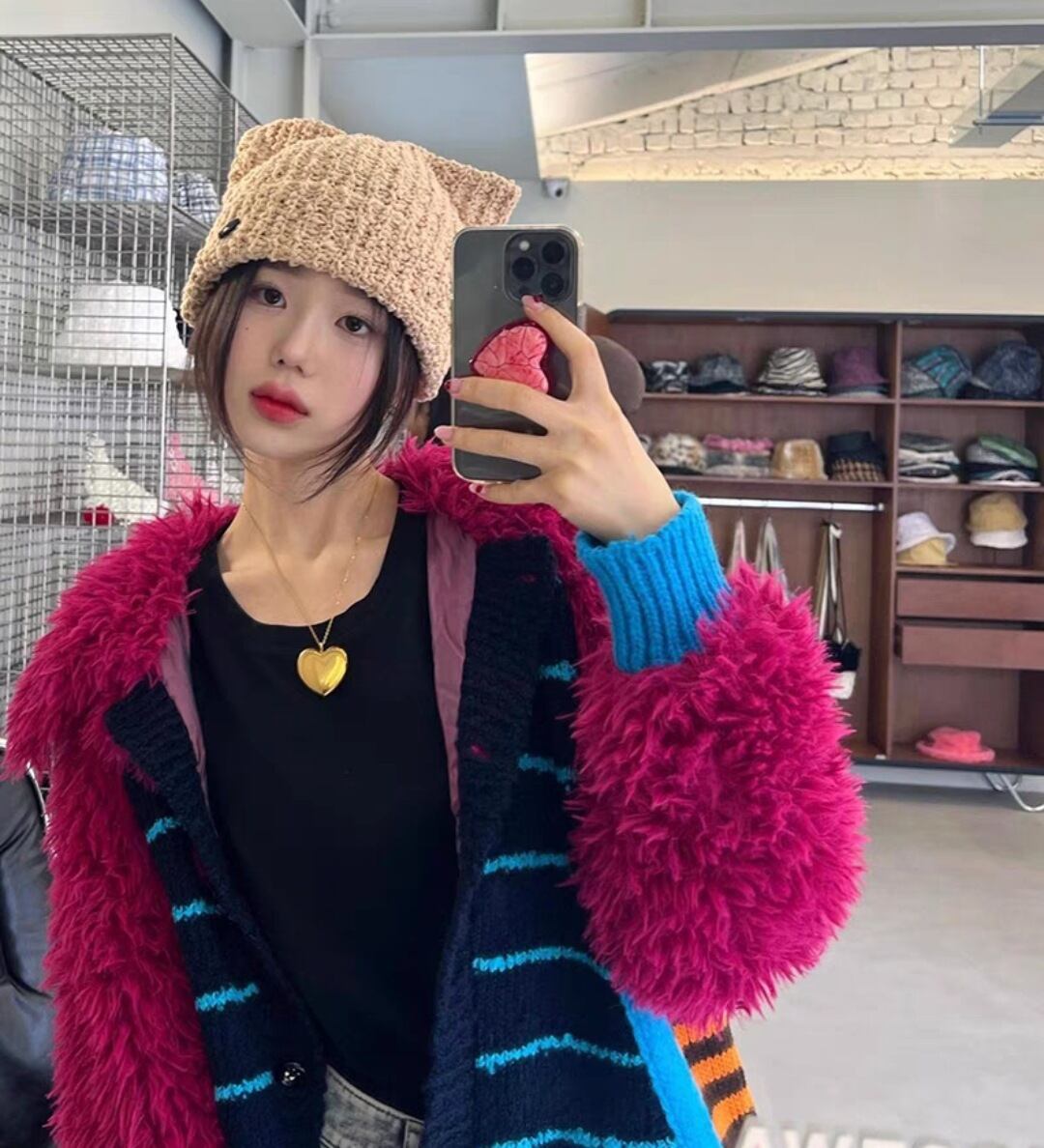 韓国 ファッション AWESOME NEEDS レディース aespa ウィンター 着用 ネコ耳 ニット帽 猫耳帽子 ニットキャップ ビーニー SS CAT KNIT HAT BEIGE