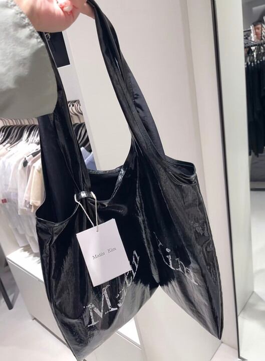 人気 韓国 Matin Kim マーティンキム ファッション エコバッグ ショルダーバッグ MATIN CRACKED LOGO GLOSSY ECO BAG BLACK
