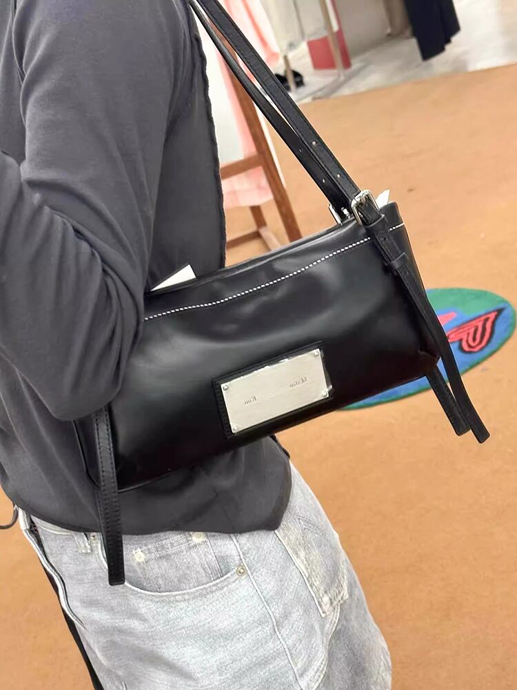 韓国ファッション Matin Kim マーティンキム エコバッグ ショルダーバッグ MATIN CRACKED LOGO GLOSSY ECO BAG BLACK