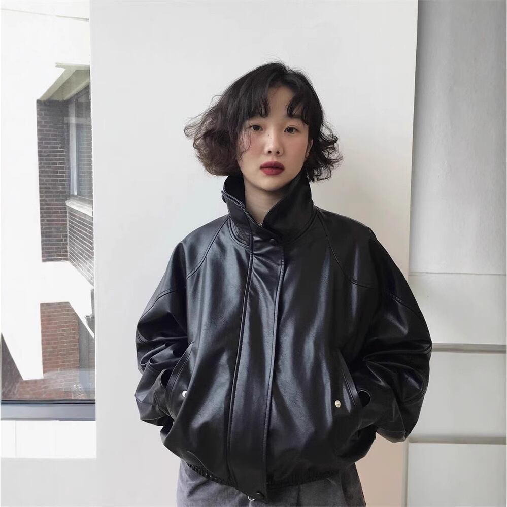 韓国 LOW CLASSIC ロウ クラシック アウター ジャケット POCKET LEATHER JACKET ブラック