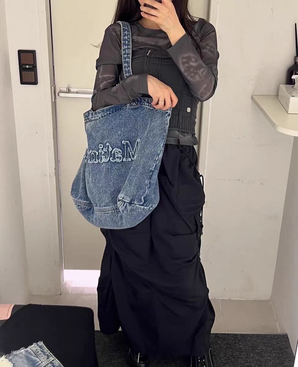 人気 韓国 Matin Kim マーティンキム ボストンバッグ レディース トートバッグ LOGO WASHED DENIM TOTE BAG BLUE