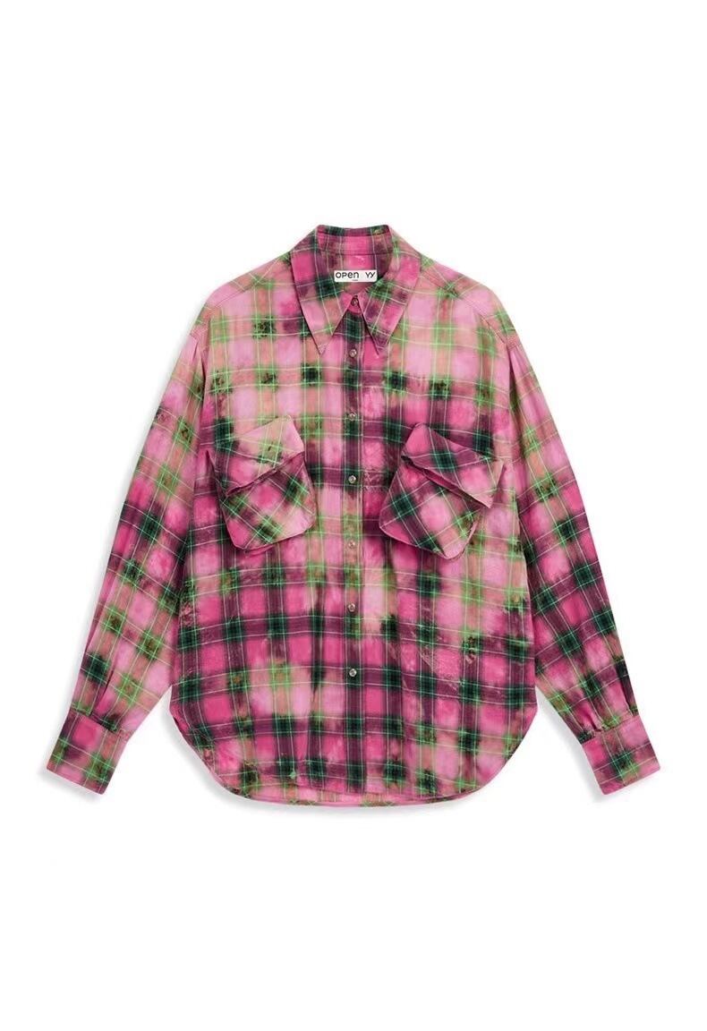 韓国 OPEN YY_TheOpen Product オープンワイワイ_ザオープンプロダクト フェード チェック ポケット シャツ レディースファッション FADED CHECK POCKET SHIRT