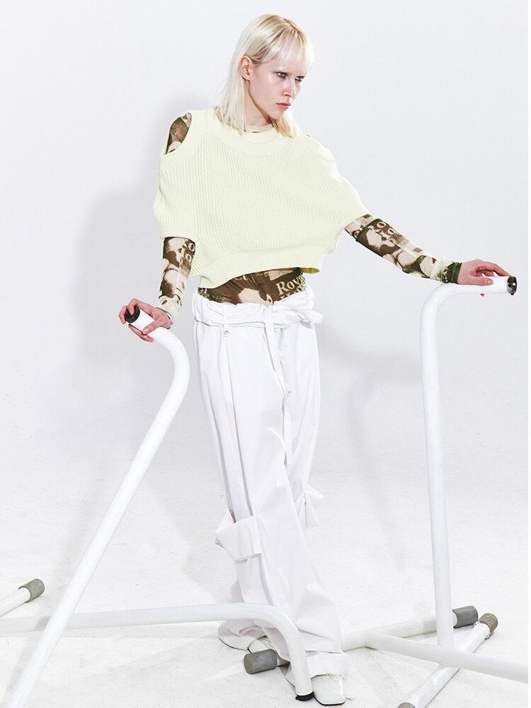 人気 韓国ファッション OPEN YY オープンワイワイ レディース トレーニングパンツ パンツ ROLLED WAIST CARGO PANT.S WHITE
