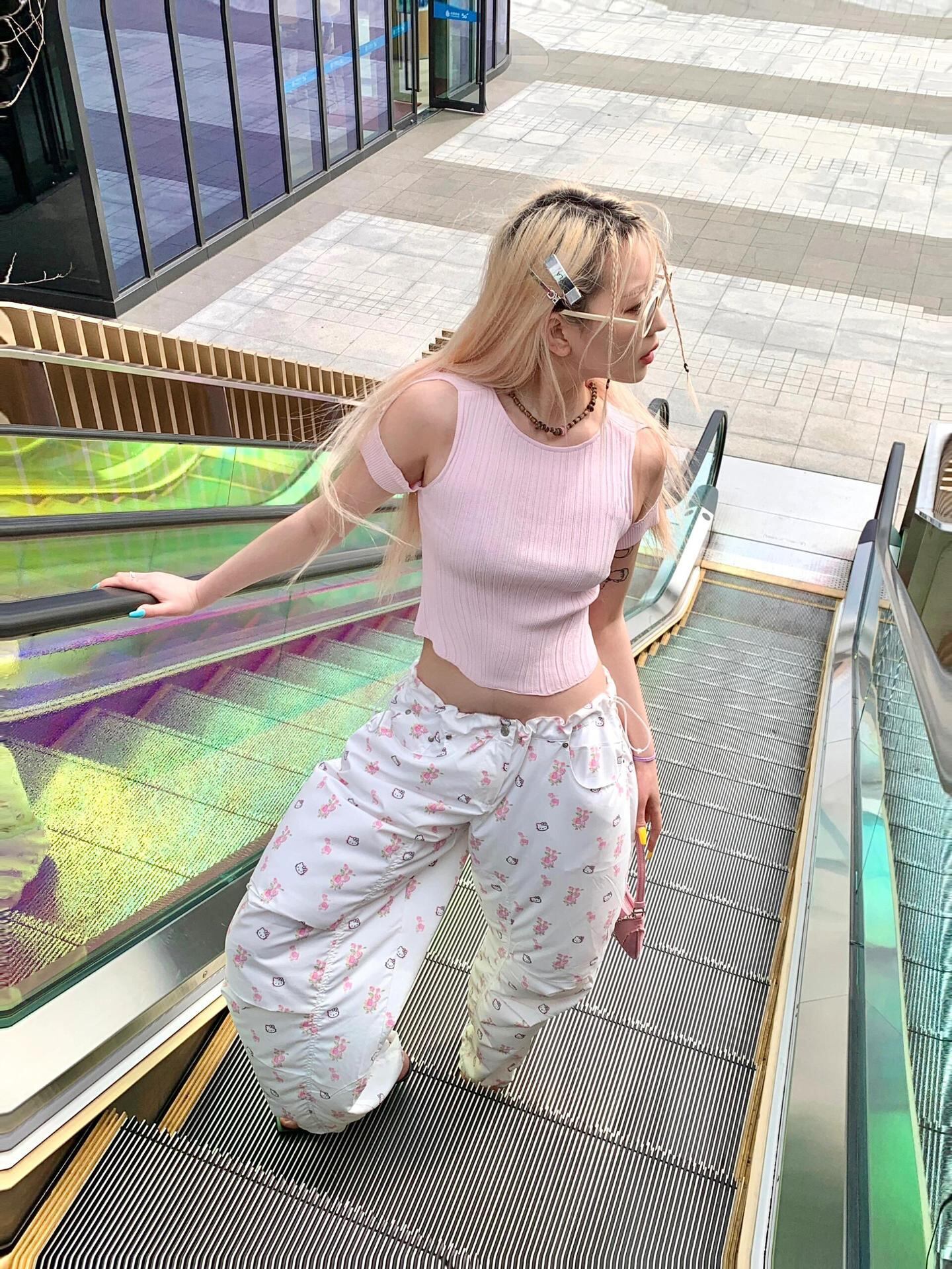 韓国 レディース ファッション gidle ミンニ 着用 OPEN YY PLEATED CUT-OUT KNIT TOP ニット