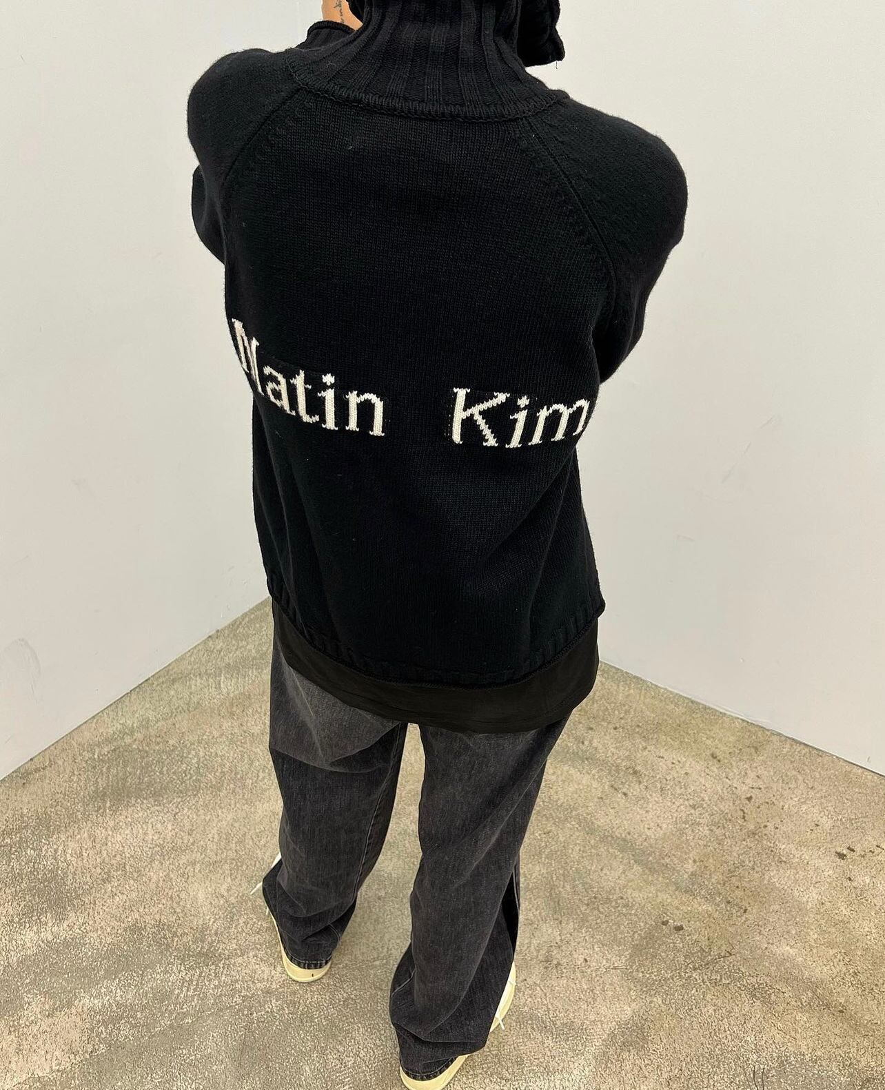 韓国 Matin Kim マーティンキム セーター ファッション 長袖 ジップアップニット SPELL POINT KNIT ZIP UP ブラック
