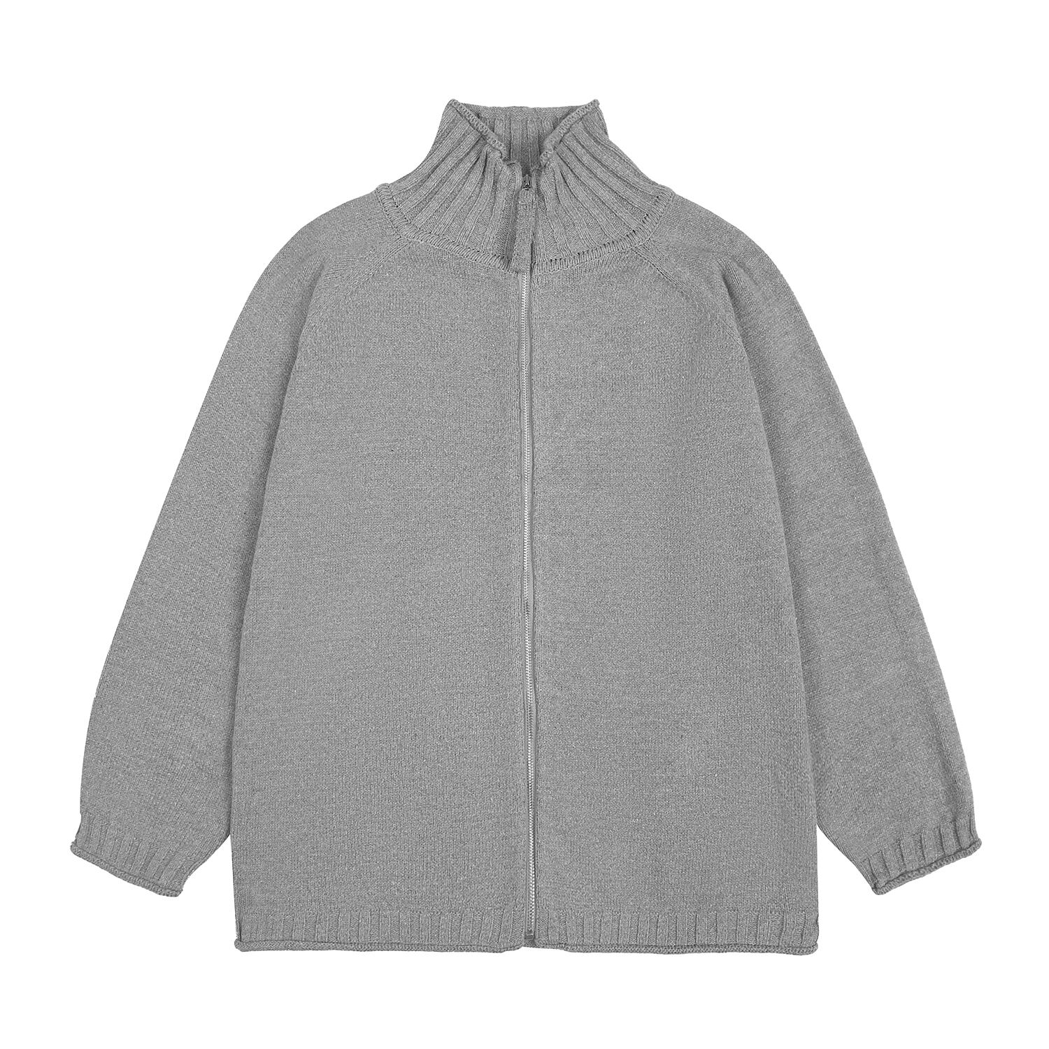 韓国 Matin Kim マーティンキム レディース セーター 長袖 ジップアップニット SPELL POINT KNIT ZIP UP グレー