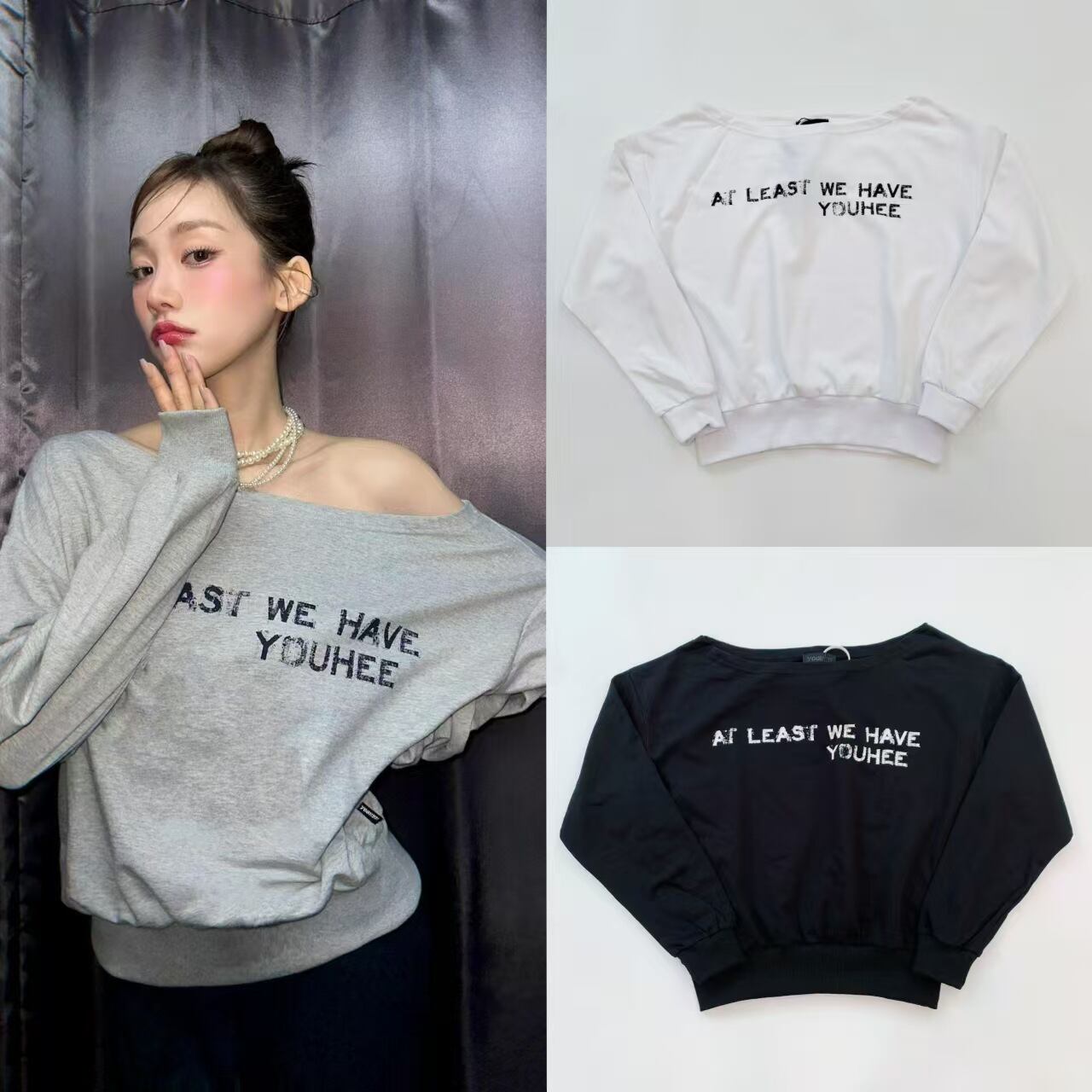 ユヒ トップス スウェット 韓国 ファッション スウェットシャツ Red Velvet ジョイ 着用 YOUHEE OFF SHOULDER SWEATSHIRTS グレー
