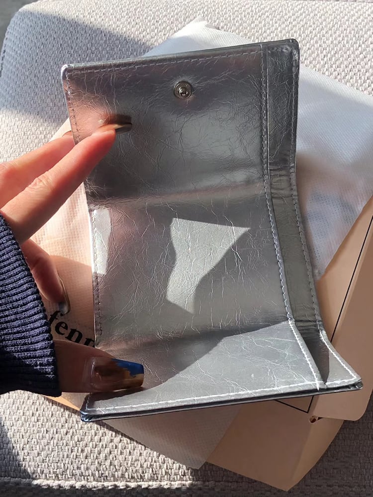 韓国 Fennec フェネック 三つ折り財布 財布 小物 カードケース 名刺入れ 人気 ファッション CRINKLE TRIANGLE TRIPLE WALLET シルバー