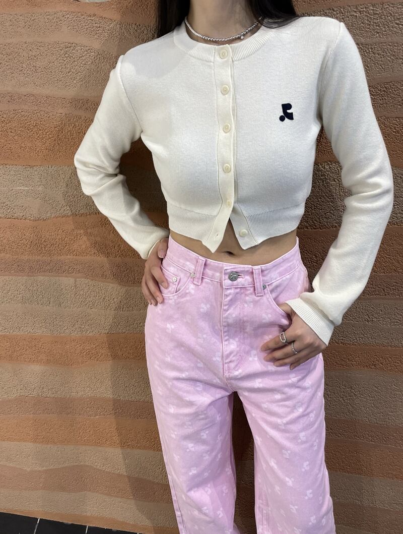 人気 韓国 ファッション レストアンドレクリエーション Rest&Recreation トップス ショート ニット カーディガン RR CROP KNIT CARDIGAN アイボリー
