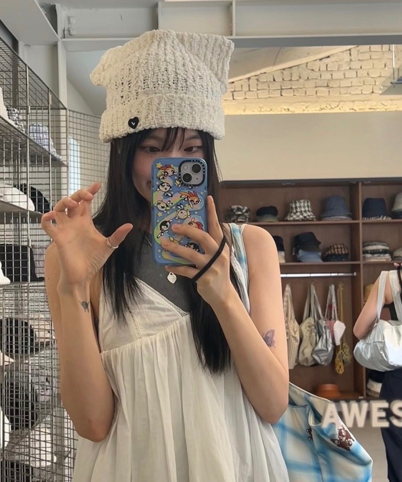 大人気 韓国 AWESOME NEEDS レディース ファッション aespa ウィンター 着用 ネコ耳 ニット帽 猫耳帽子 ニットキャップ ビーニー SS CAT KNIT HAT WHITE