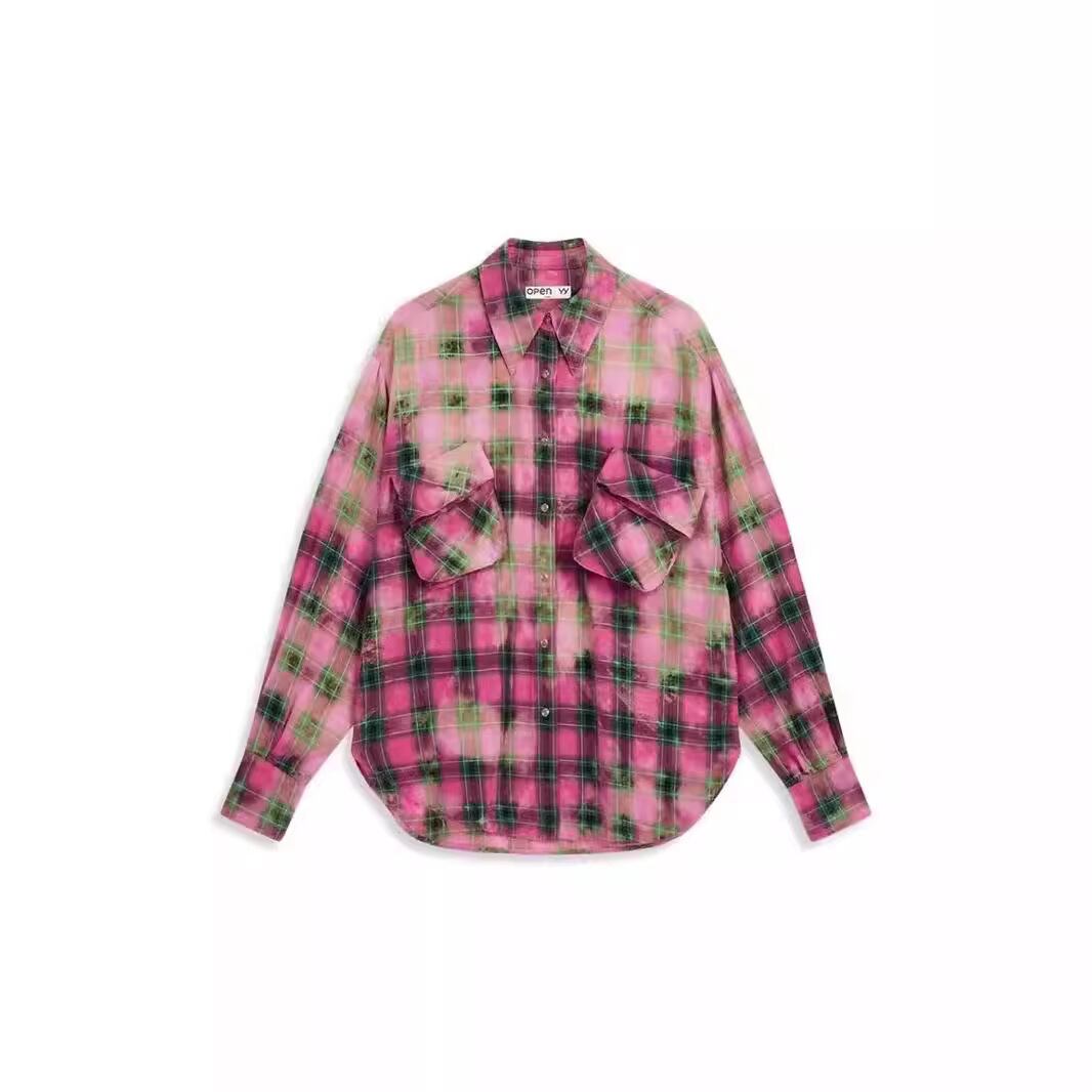 韓国 OPEN YY_TheOpen Product オープンワイワイ_ザオープンプロダクト フェード チェック ポケット シャツ レディースファッション FADED CHECK POCKET SHIRT