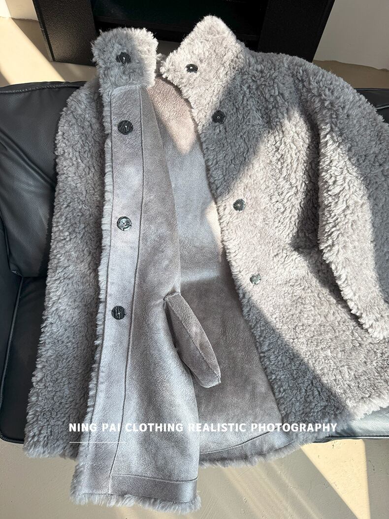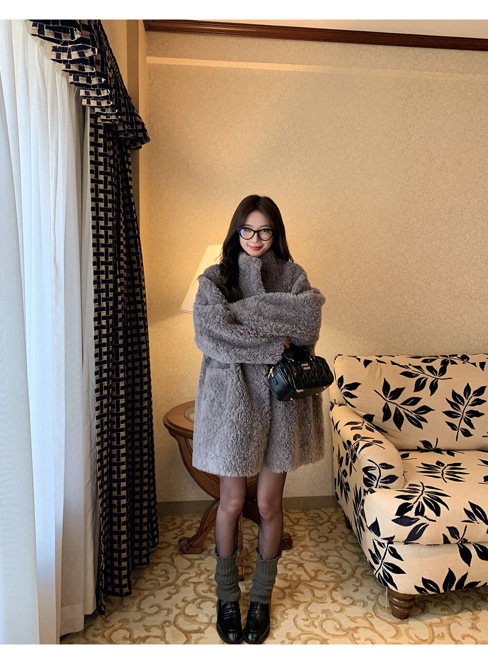 秋冬新作 韓国 ボアブルゾン ウール100% アウター ジャケット コート もこもこ チェスターコート 防寒 防風コート エコファーコート グレー