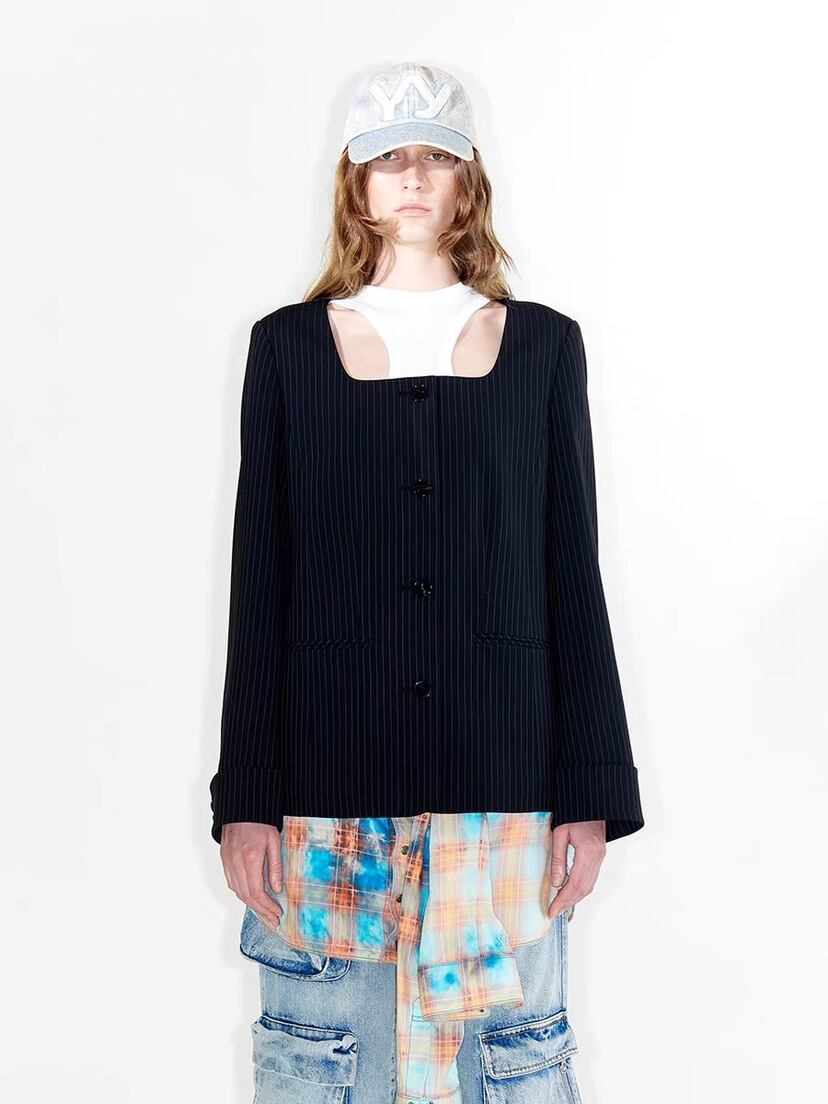 韓国 OPEN YY オープンワイワイ レディース ファッション ジャケット アウター SQUARE NECK JACKET ブラック