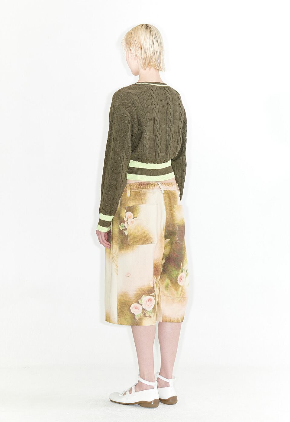 韓国 OPEN YY オープンワイワイ レディースファッション ニット トップス 長袖 Vネック カーディガン HEART&CABLE CARDIGAN KHAKI