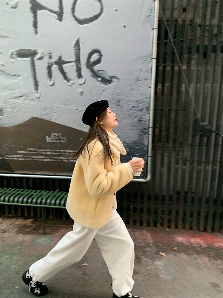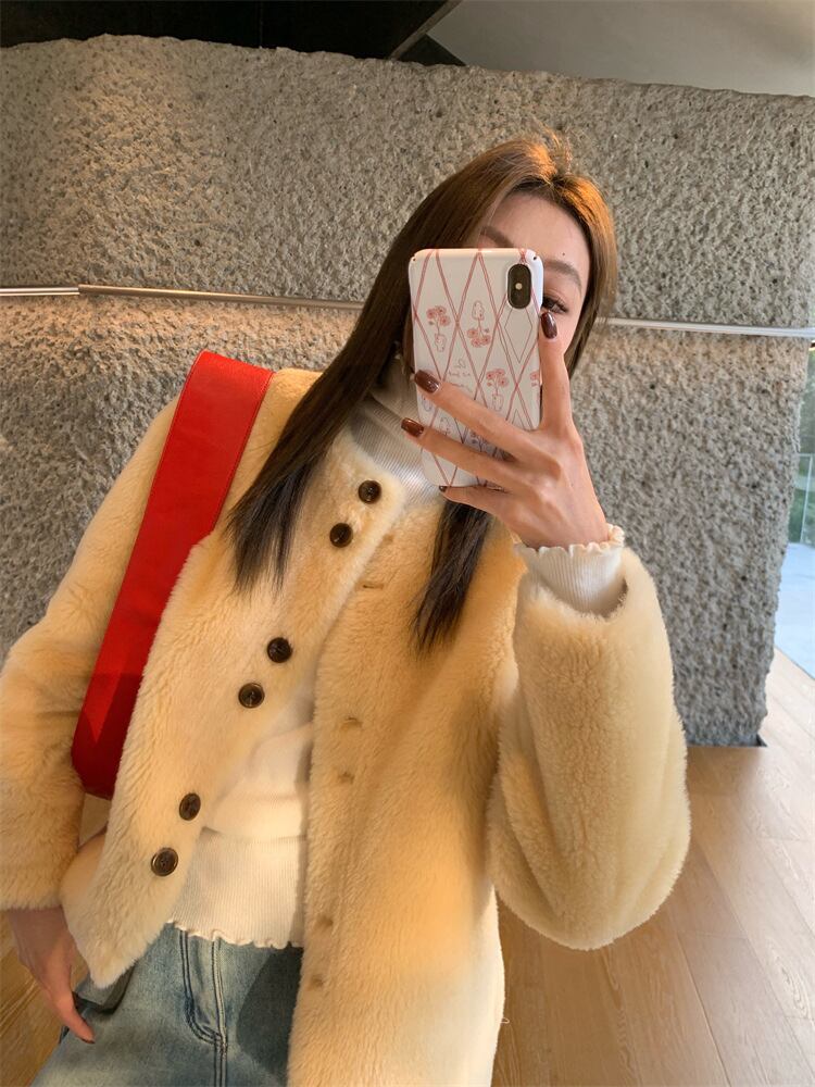 ファーコート ウール100% ノーカラー レディース ブルゾン ジャケット ショートコート コート 秋冬 冬 長袖 暖かい 防寒 防風 アウター ファー エコファー 毛皮コート 厚手 暖かい 上品