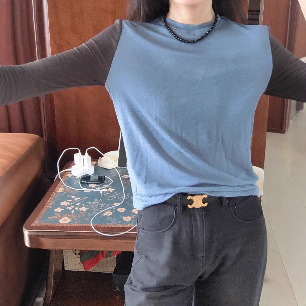 大人気 韓国 ファッション LOW CLASSIC ロウ クラシック 長袖 トップス TシャツCONTRAST WOOL TENCEL T-SHIRT