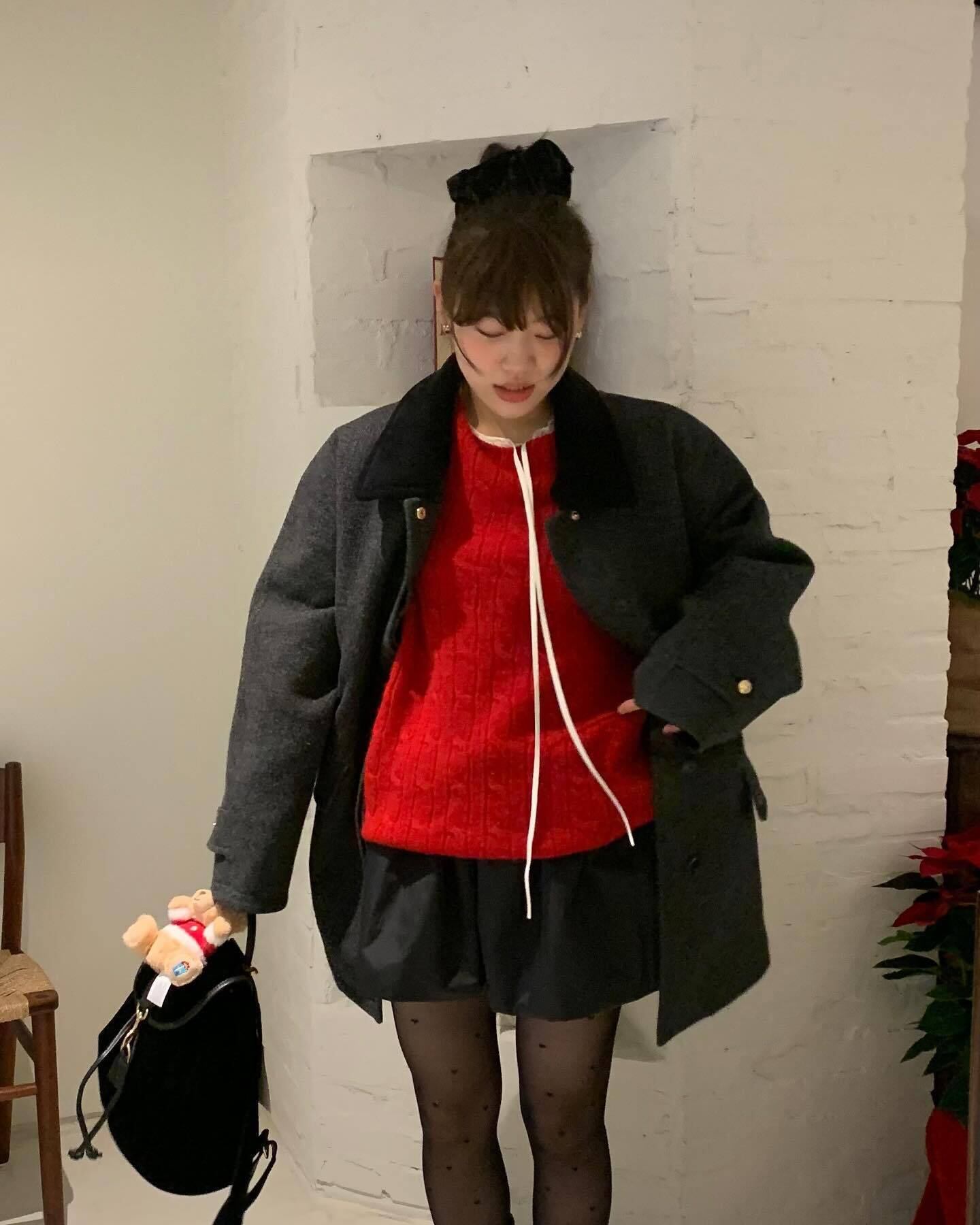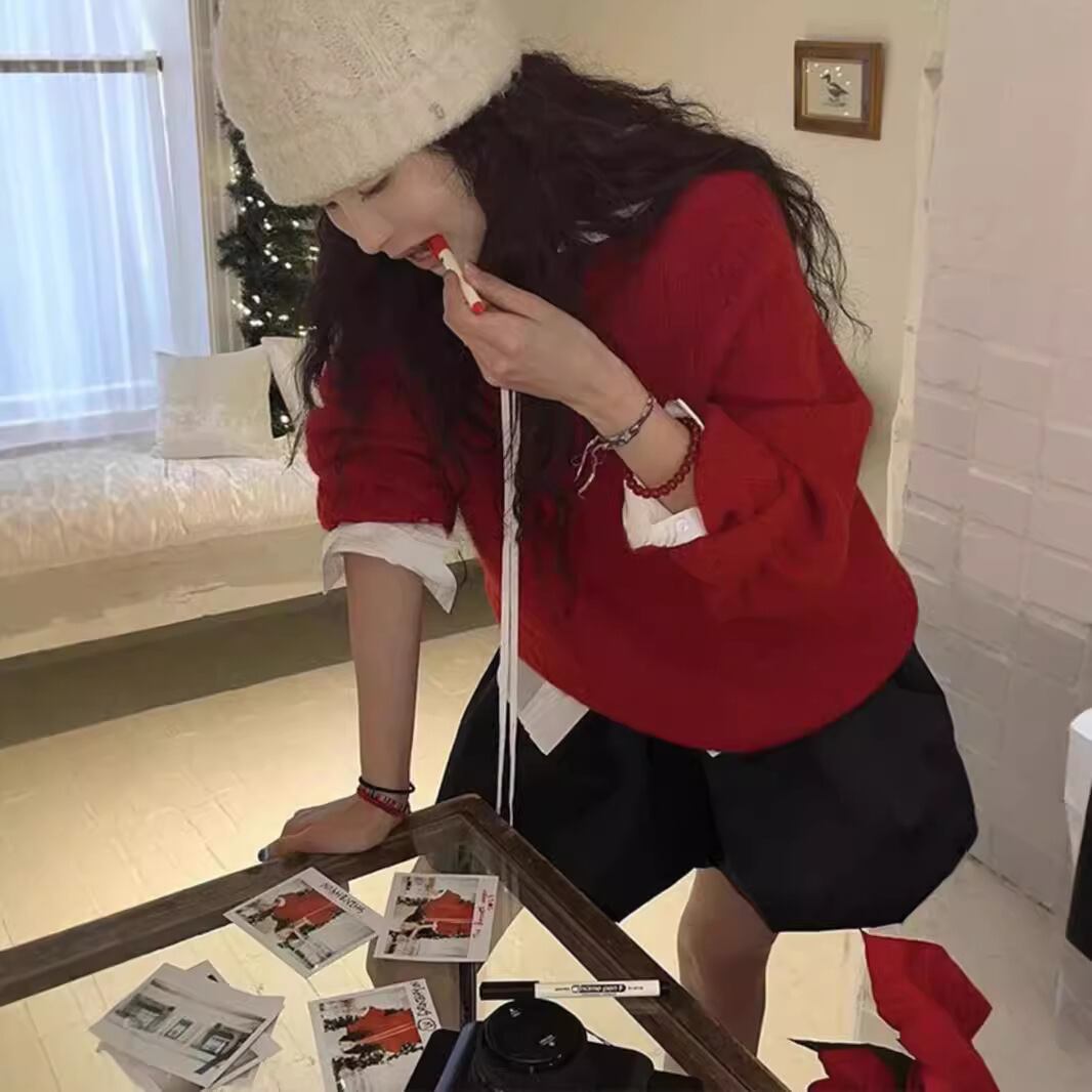 韓国 ファッション The Barnnet ザ バーネット セーター ニットトップス Boucle Pointelle Knit Sweater レッド