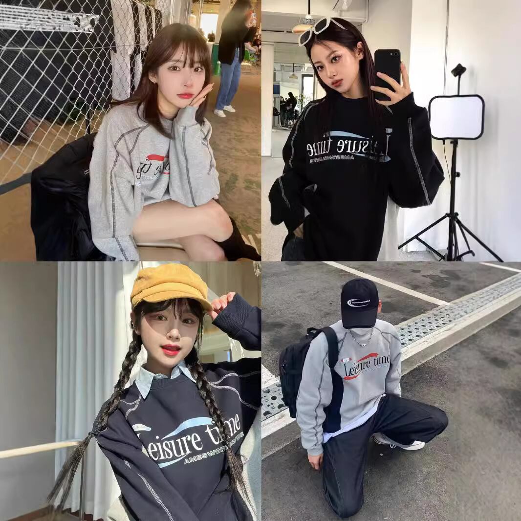 新品 韓国 ファッション アメスワールドワイド トップス スウェット トレーナー おしゃれ ゆったり カジュアル レディース メンズ 男女兼用 グレー #b470