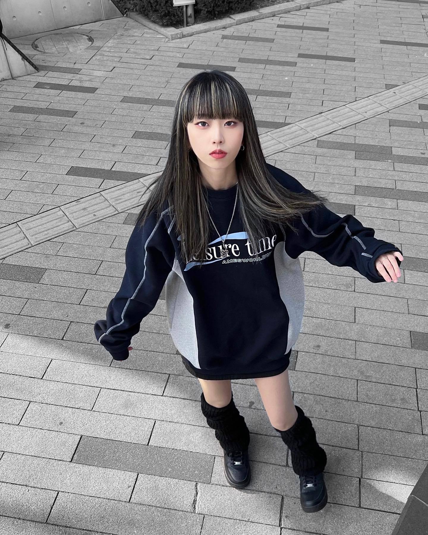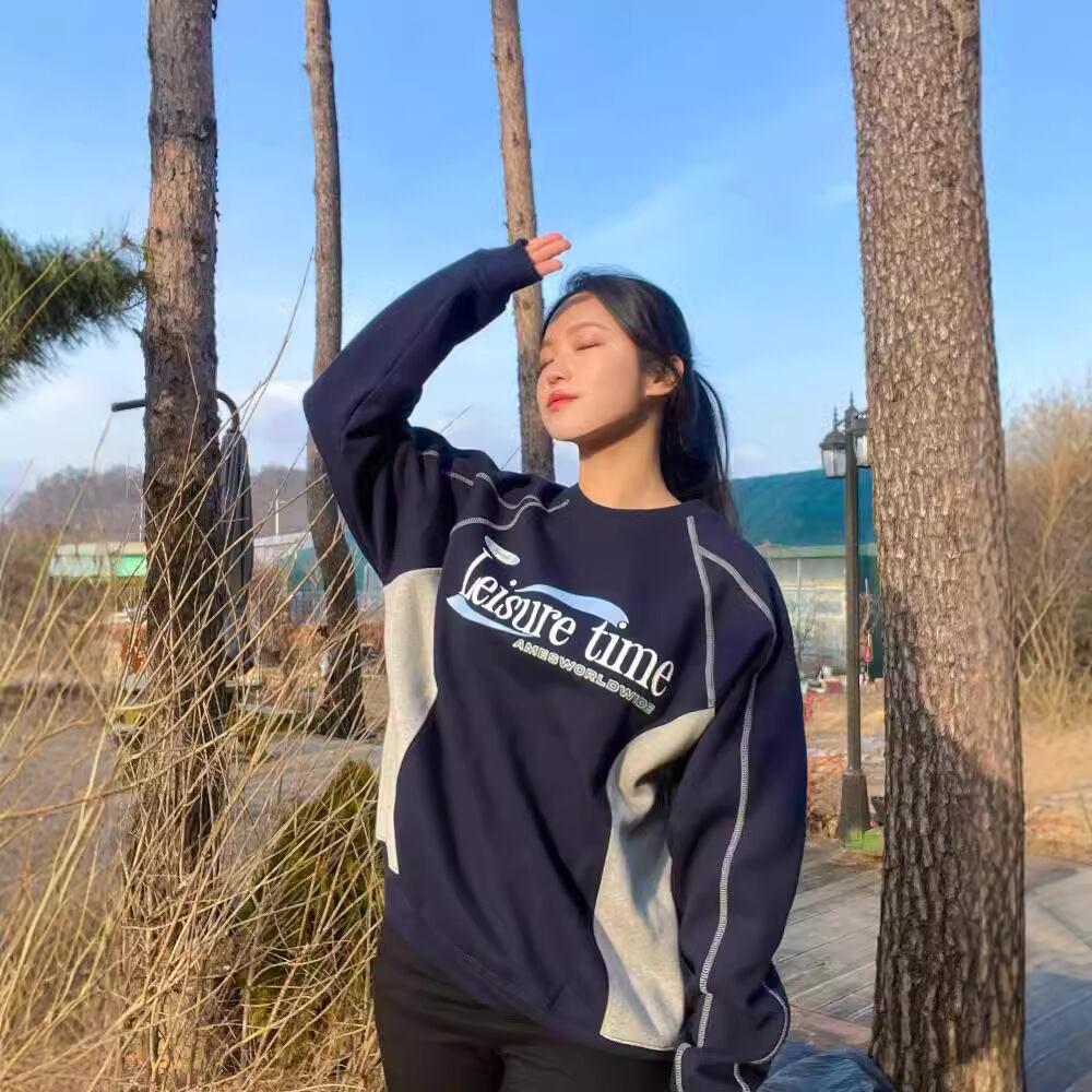 新品 韓国 ファッション アメスワールドワイド トップス スウェット トレーナー おしゃれ ゆったり カジュアル レディース メンズ 男女兼用 紺色 #b470