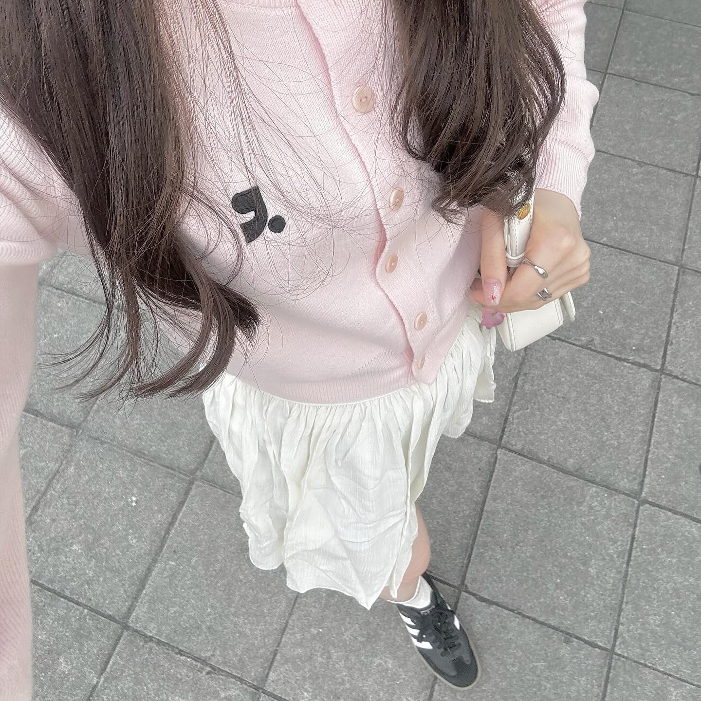 韓国 ファッション Rest&Recreation レストアンドレクリエーション トップス ショート ニット カーディガン RR CROP KNIT CARDIGAN ピンク