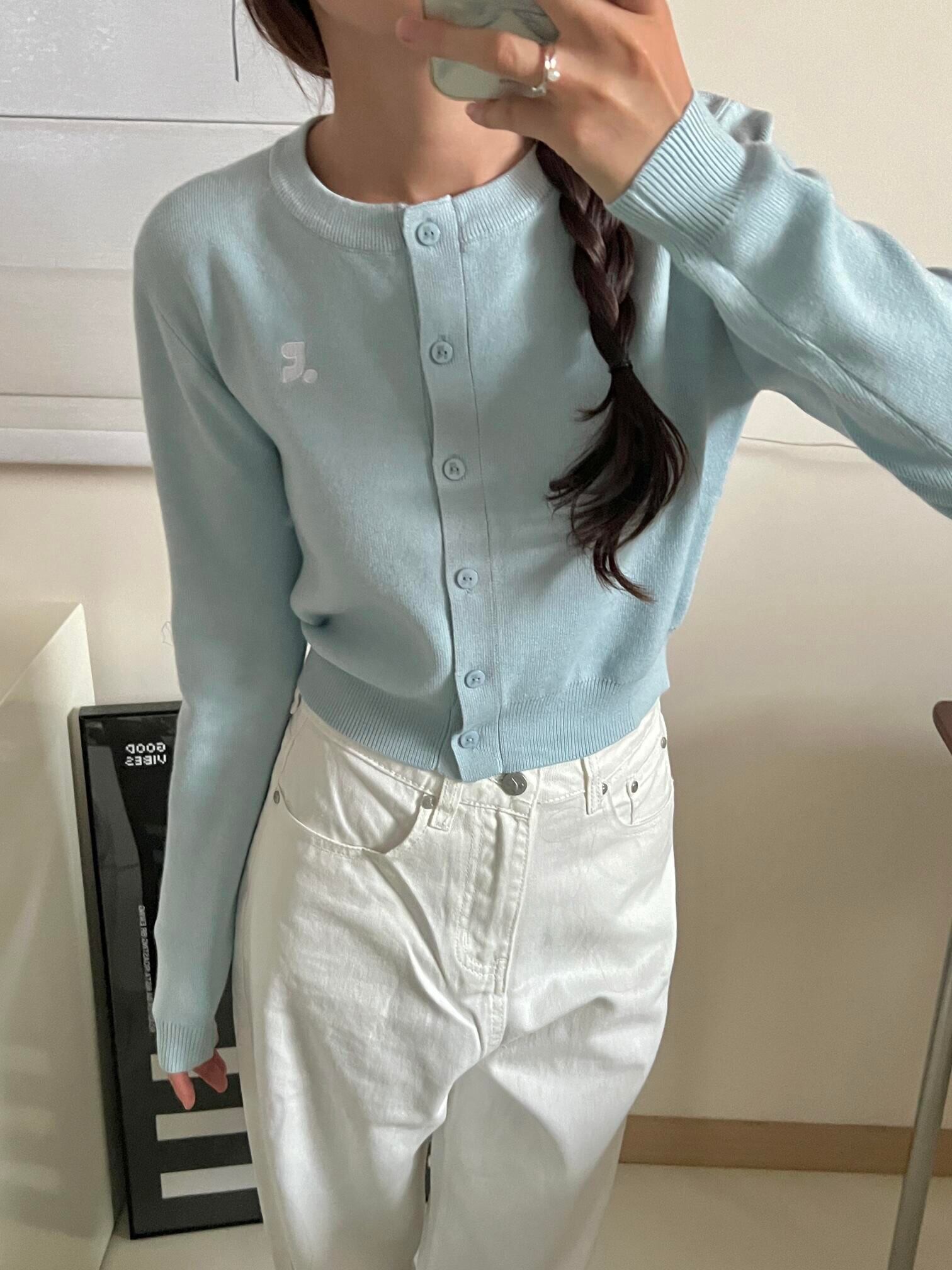 大人気 韓国 ファッション レストアンドレクリエーション Rest&Recreation 可愛い トップス ショート ニット カーディガン RR CROP KNIT CARDIGAN スカイブルー