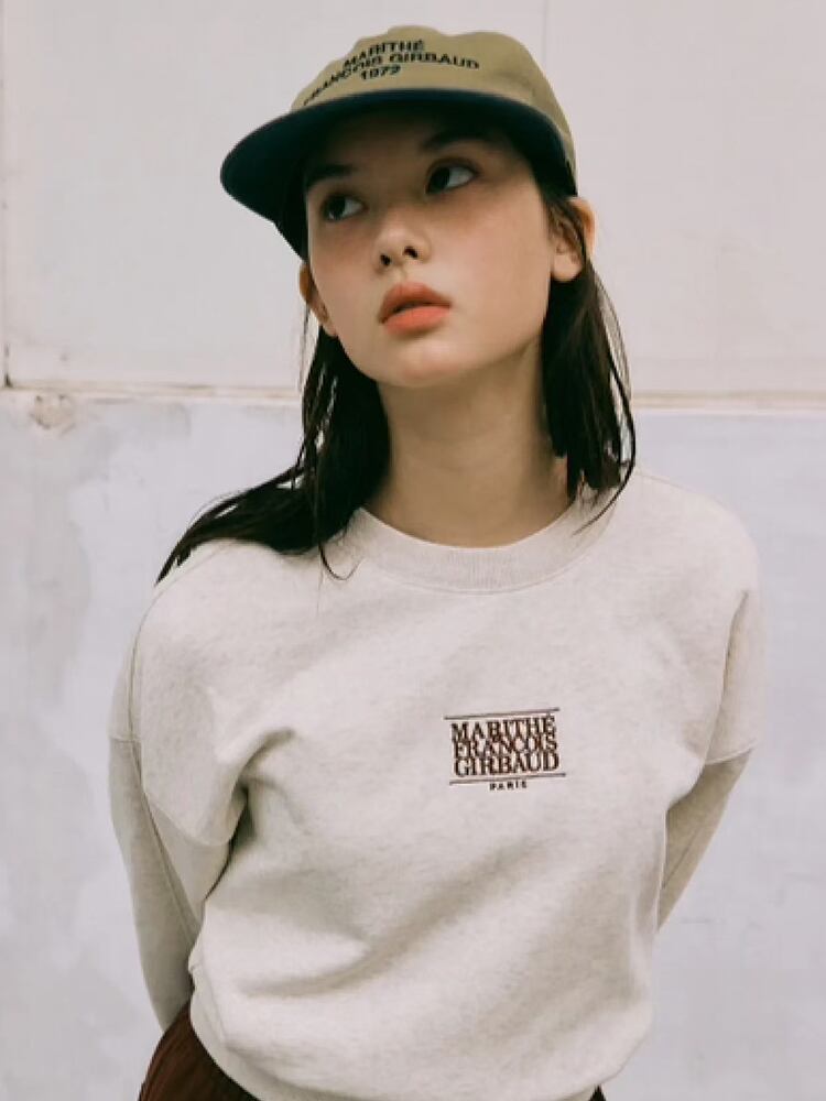 韓国 マリテフランソワジルボー レディース ロゴスウェット 長袖 ラウンドネック スエット MARITHE オートミール