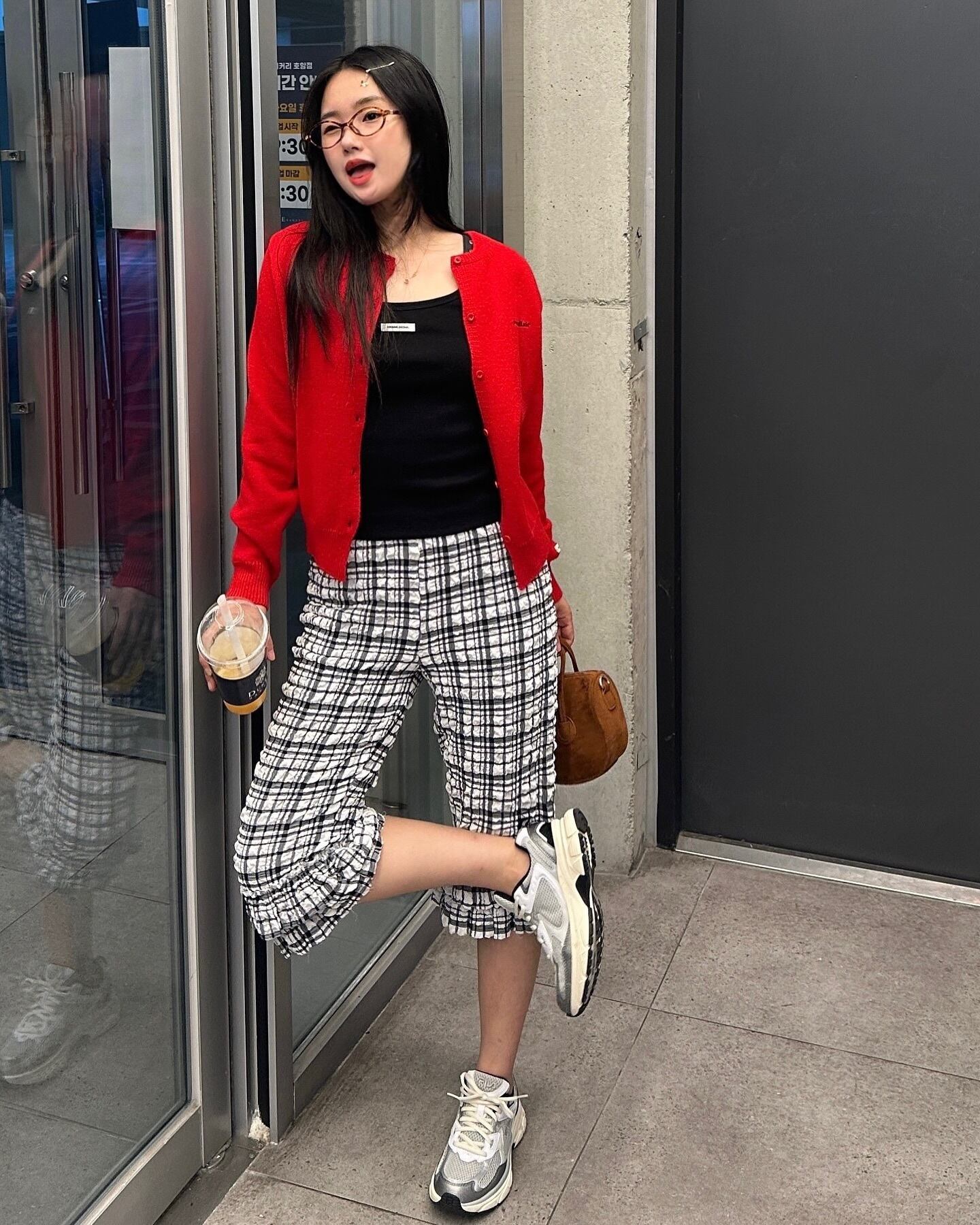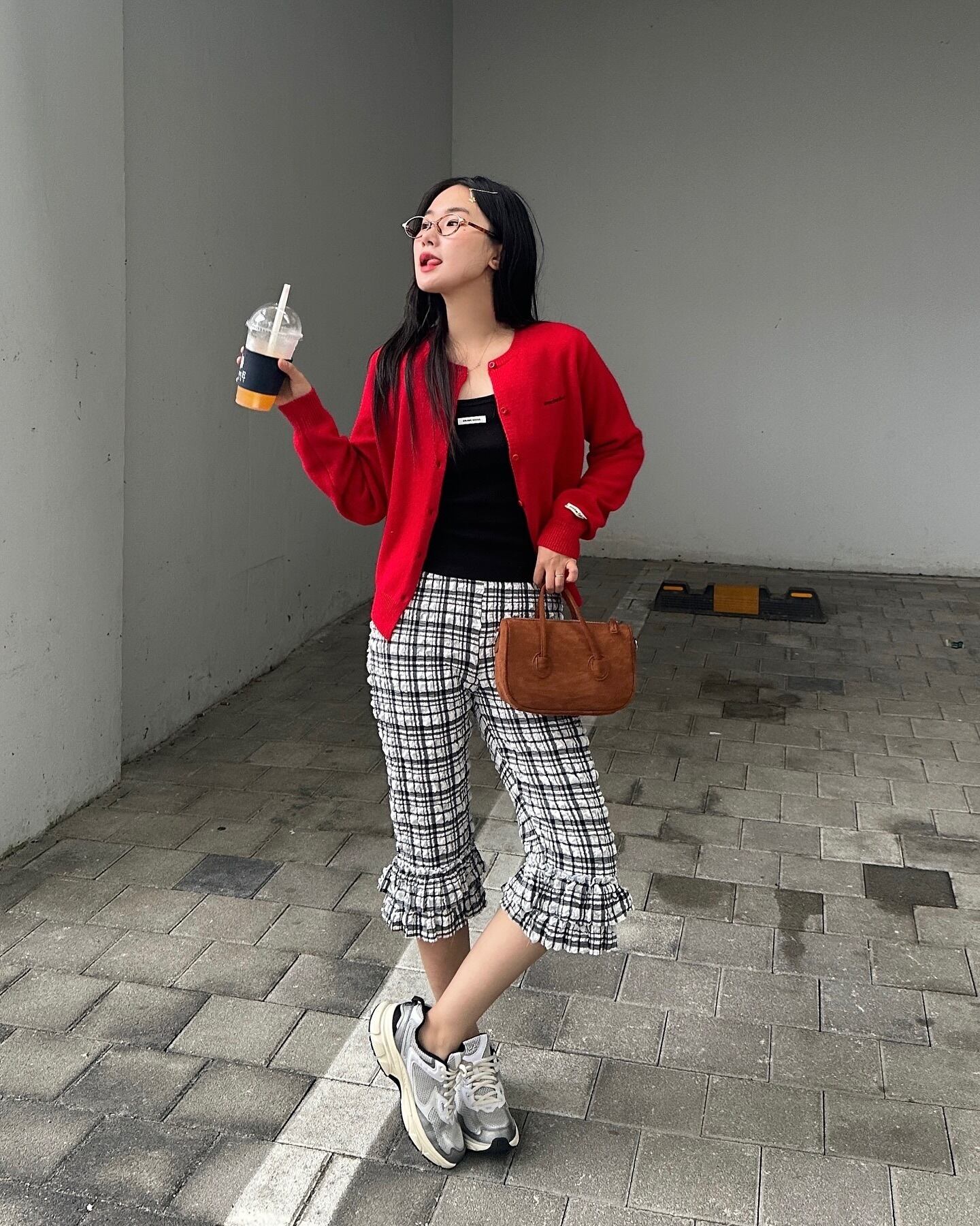 韓国 overdue flair オーバーデューフレア レディース トップス クルーネック カーディガン OVERDUE WOOL CARDIGAN レッド