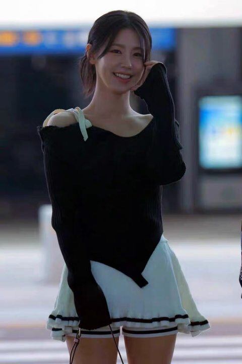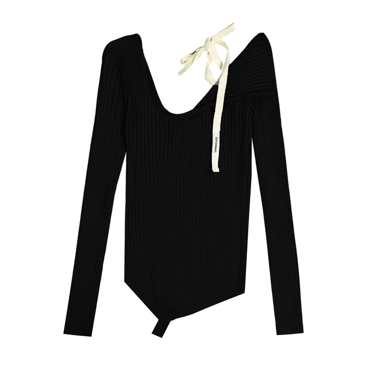 人気 韓国 GLOWNY グロウニー (G)I-DLE ミヨン 着用 アシンメトリーニット 長袖 ISA ASYMMETRICAL KNIT TOP ブラック