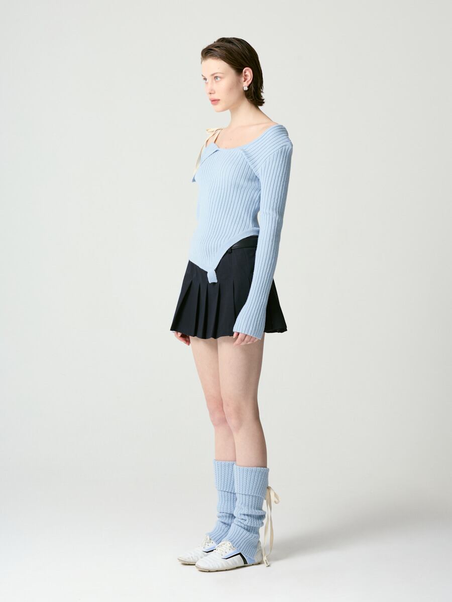 GLOWNY グロウニー アシンメトリーニット トップス 長袖 韓国 ファッション ISA ASYMMETRICAL KNIT TOP ライトブルー