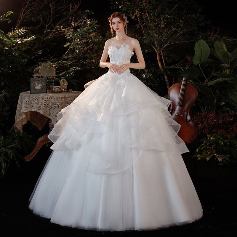 結婚式 ドレス ウェディング ベール グローブ ロングドレス パニエ付き ウエディングドレス コンサート 演奏会 プリンセスラインドレス ステージ衣装 パーティードレス ウェディングドレス 発表会 二次会 花嫁 ホワイト