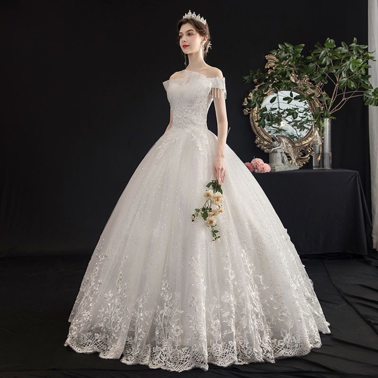 小個子の花嫁にぴったりのサイズ感で、森系の雰囲気を持ち、夢幻的な印象を与えます。