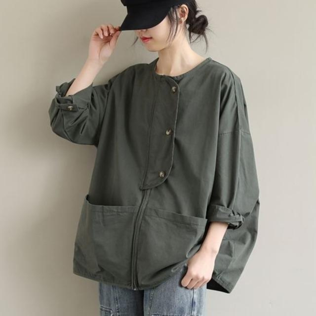 スプリングコート トレンチコート ショートコート ジャケット レディース 春 コート アウター ゆったり ショート丈 グリーン