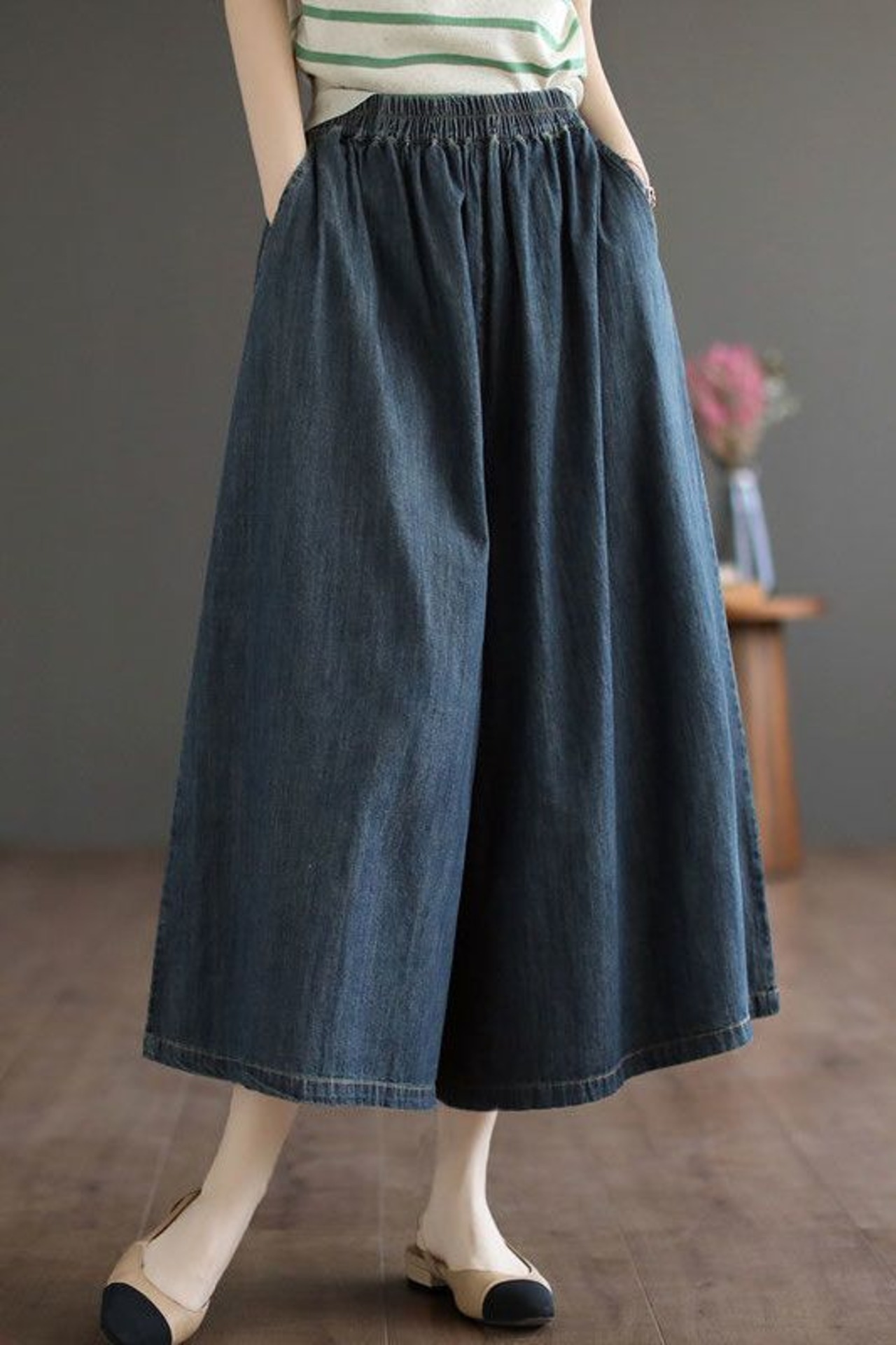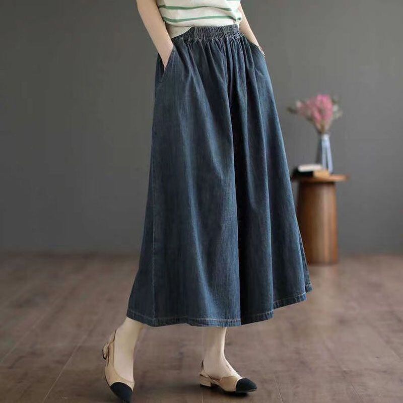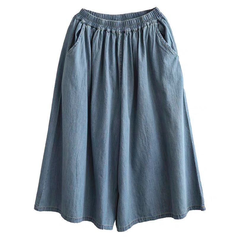 ガウチョパンツ デニム レディース ワイドパンツ 大きいサイズ パンツ ゆったり 夏 春 ガウチョ スカートみたい 九分丈 ネイビー ブルー
